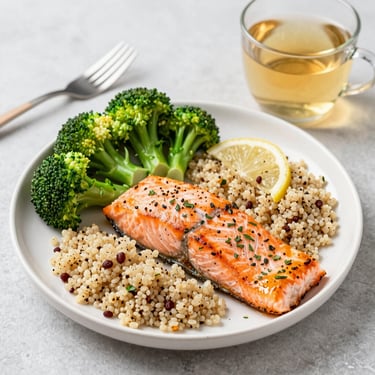 Dinner: Conclude the day with a well-rounded dinner featuring baked salmon seasoned with herbs, a serving of quinoa, and steamed broccoli. This meal combines lean protein with beneficial omega-3 fatty acids and complex carbohydrates, contributing to overall health. A glass of water or herbal tea complements the meal, ensuring adequate hydration.